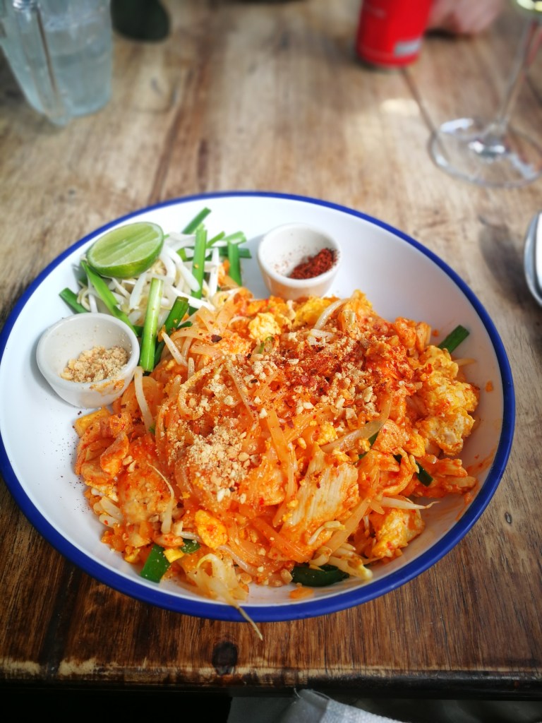 Ruoka Thaimaassa on halpaa niinpä mekin söimme päivittäin kaksi lämmintä ateriaa alueen ruokapaikoissa. Mieleen jäi erityisesti Pad Thai joka on riisinuudeli ruoka ja niissä voi olla eri raaka-aineita ravintolasta riippuen. Toinen ruoka jota söimme paljon oli erilaiset keitot. Ne oli maustettu todella monenlaisilla mausteilla ja osa oli aika tulisiakin. Meille ei tullut minkäänlaisia vatsavaivoja reissulla. Kun muistaa pestä käsiä useasti ja käyttää käsidesiä niin muuta erityistoimienpiteitä ei tarvita. Juomissa jääpalat on tehty pulloveteen joten senkin puolesta maistelimme kaikenlaisia juomia smoothiesta drinkkeihin. Mainittakoon vielä että matkalle kannattaa vaihtaa käteistä rahaa koska pankkikortti mahdollisuutta on vain paremmissa ravintoloissa ja kauppakeskuksissa.