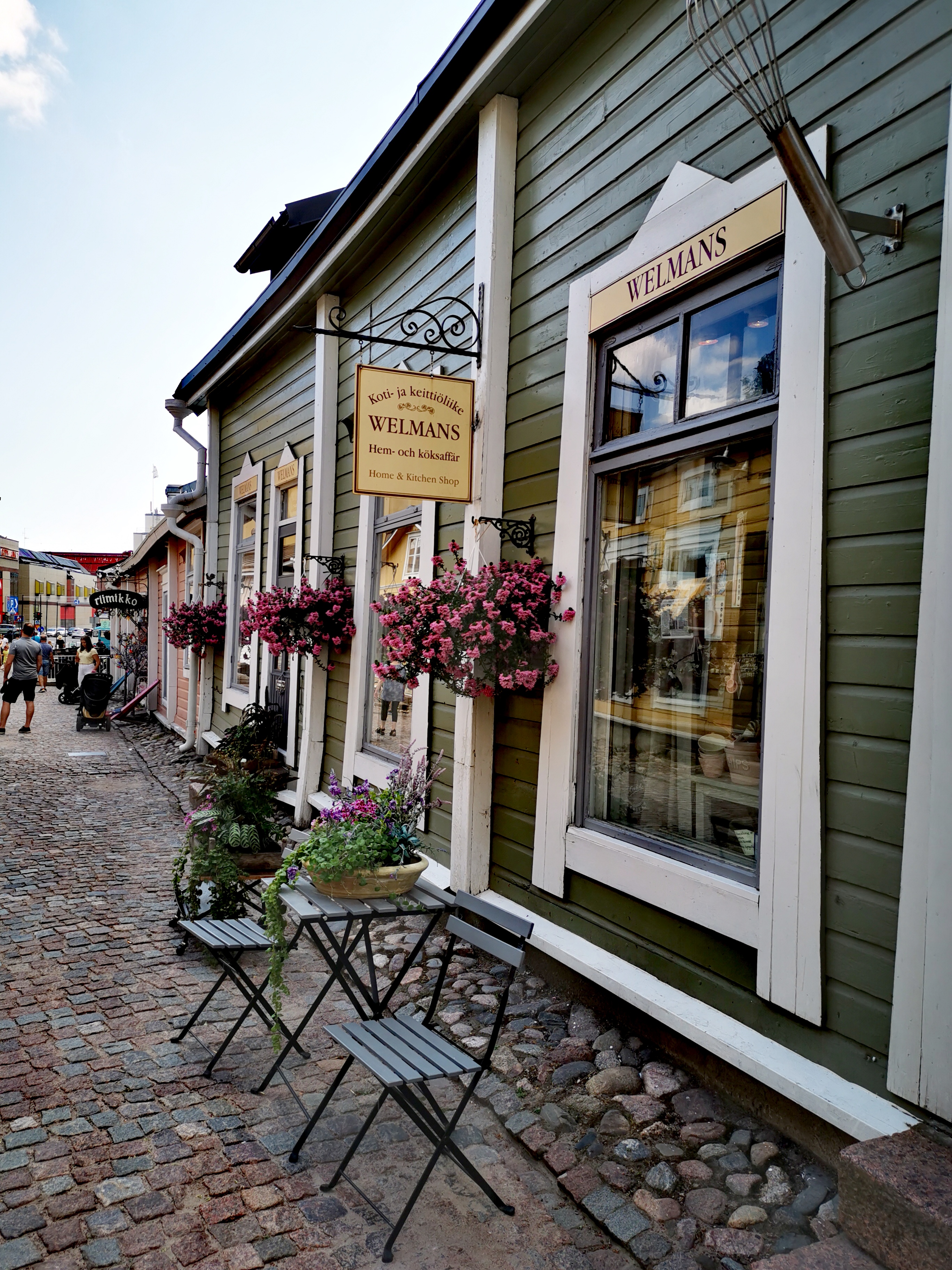 Saavuimme vanhan kaupungin liepeille josta löysimme kuin ihmeen kaupalla melkein heti parkkipaikan. Väkeä oli paikalla runsaasti mutta ei liikaa että olisi ollut tungokseen saakka. Lähdimme kävelemään pientä mukulakivikatua pitkin joka johti meidät suoraa vanhan kaupungin ytimeen. Molemmin puolin katua oli viehättäviä pieniä putiikkeja. Pistäydymme niistä muutamassa. Tarjolla oli paljon sisustusaiheisia kauppoja sekä kahviloita ja ravintoloita.