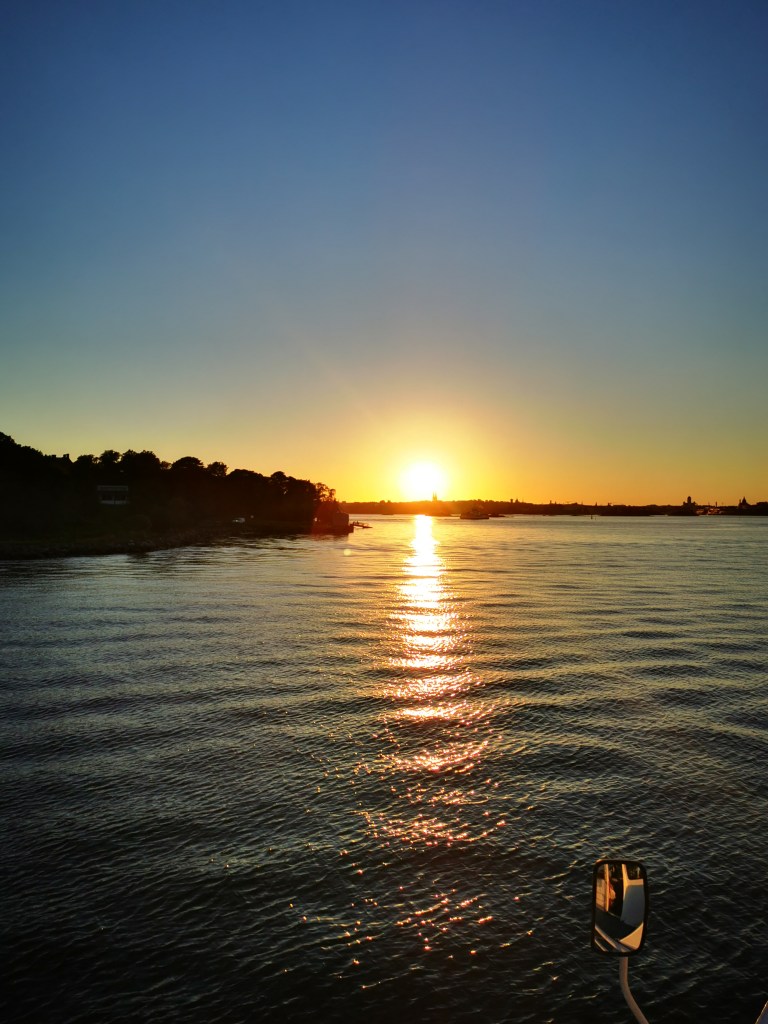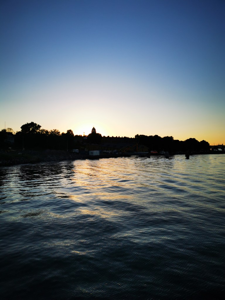Auringonlaskiessa palasimme takaisin Kauppatorin rantaan. Upea ilta-aurinko, illallinen ja tyyni meri tekivät todella vaikutuksen meihin. Risteily oli kaikinpuolin hieno kokemus. Tästä tulee kyllä meidän vaki käyntikohde ja suositus muillekin.