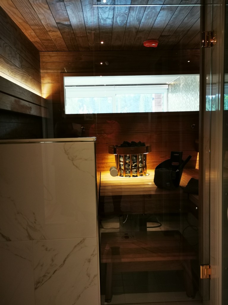 Yläkerran suurista ikkunoista oli upea näkymä japanilaishenkiseen puutarhaan. Kun tulimme takaisin alas saavuimme spa osastolle jossa oli myös oma uima-allas.