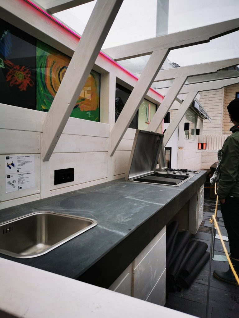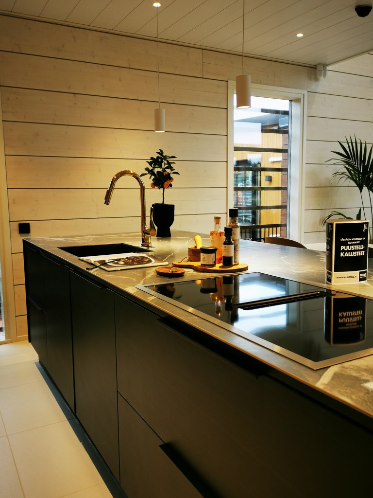 Olohuone ja keittiö olivat yhtenäistä tilaa joka antoi avaruutta huoneeseen. Suuret ikkunat, keittiössä iso saareke ja leivinuuni tekivät todellakin suuren vaikutuksen. Upea kohde.