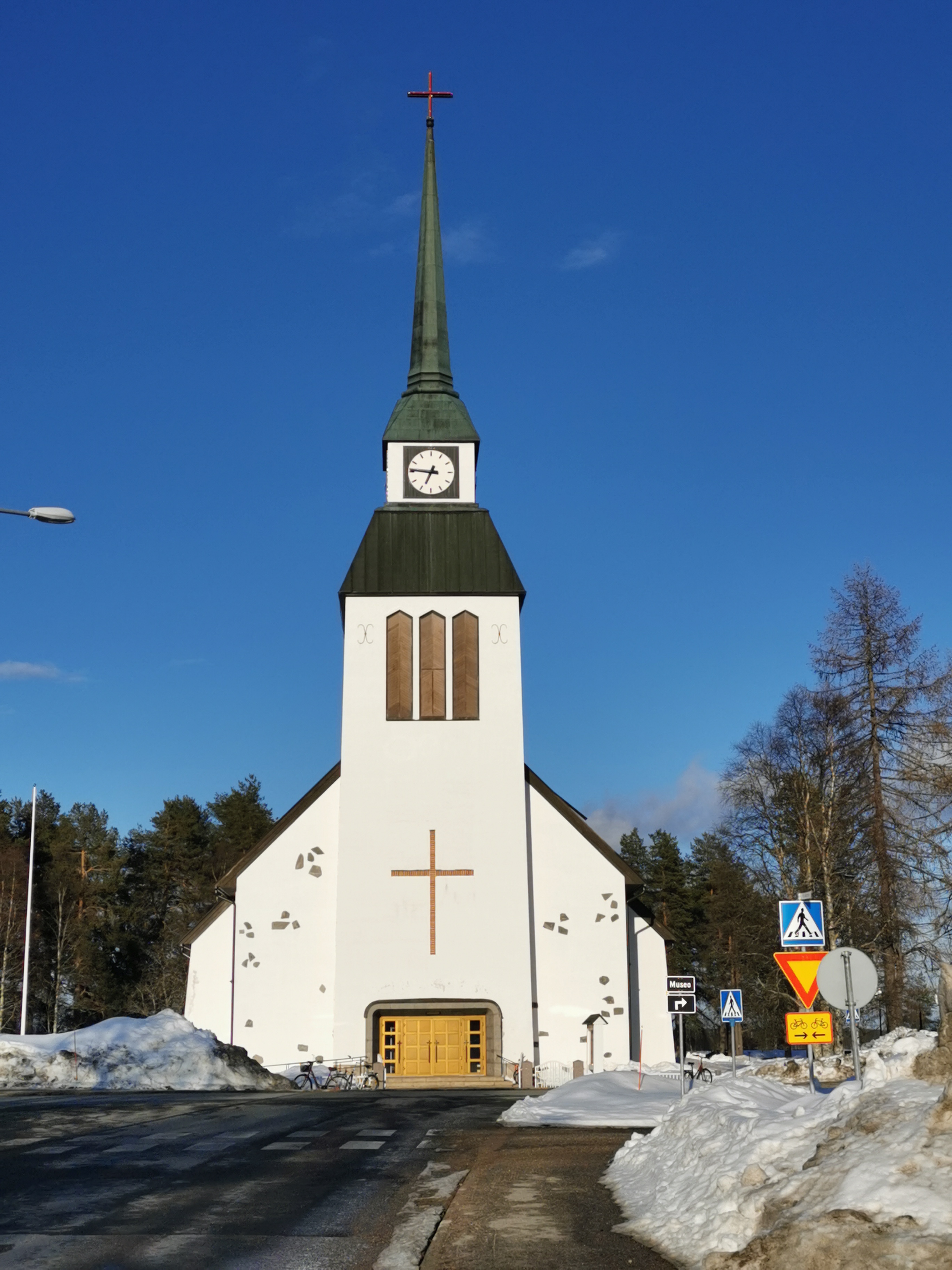 Sisarusten kanssa kokoonnuimme äitini luokse, jossa vaihdoimme kuulumisia. Äidin herkkupöytä on aina runsaasti katettu juhlapyhinä. Tarjolla oli taas perinteisiä herkkuja kuten täytekakkua, voileipäkakkua ja kampanisuja. Piipahdimmekin useaan otteeseen äitini luona sekä myös mieheni isän luona. Molemmat asuvat keskustassa. Useinmiten menimme vierailulle kävellen. Samalla katselimme tuttua kylää, joka onkin saanut uuden ilmeen sen jälkeen kun me olemme muuttaneet etelään. Kuusamon keskusta oli aika hiljainen pääsiäisen aikaan, koska paikalliset nauttivat aikaa mökeillä ja turistit Rukalla.