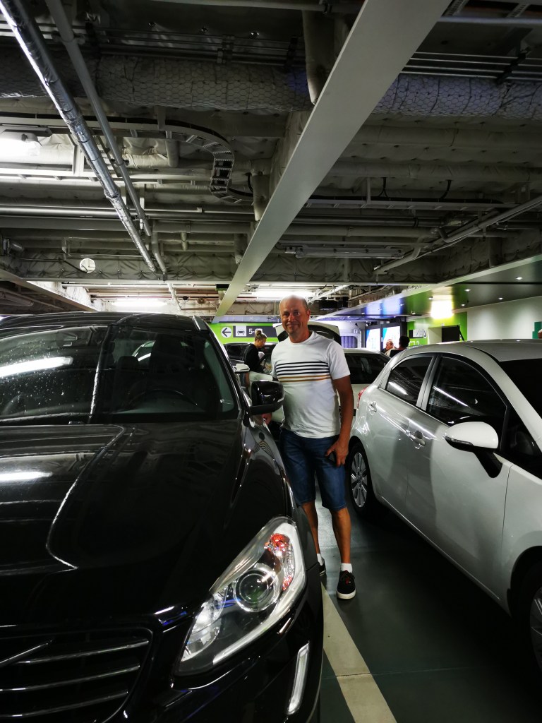 Varasimme laivaliput MegaStariin hyvissä ajoin, koska autopaikkoja on rajoitettu määrä laivoissa. Auton vieminen laivaan on aika hintavaa varsinkin keskellä kuuminta kesäsesonkia, mutta jos kyydissä on useampi henkilö silloin kustannuksia voi jakaa. Lähtö Tallinnaan tapahtuu Länsiterminaalista. Automatkustajina meillä ei tarvinnut mennä sisälle näyttämään lippuja, vaan ajoimme suoraa laivalle vievään autojonoon. Noin puolessa välissä on lipun tarkastuspiste jossa näytetään matkaliput ja tarkastetaan passit. Tämän jälkeen meidät ohjattiin oikealle kaistalle laivaan menoa varten. Tällä matkakalla saimme paikan parhaalta paikalta 7 kannelta. Siitä pääsi suoraan ostoskerrokseen. Matkan aikana voi tuoda ostoksia suoraan autoon. 2 tunnin laivamatka meni siivillä.