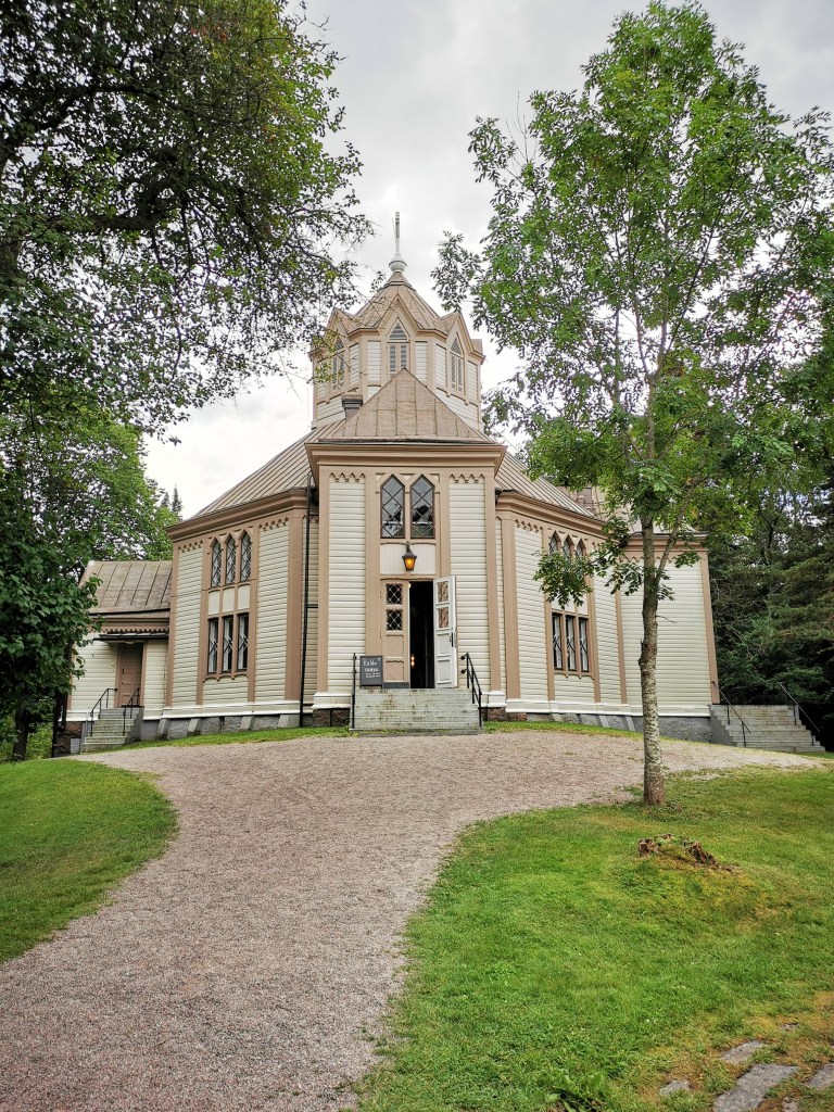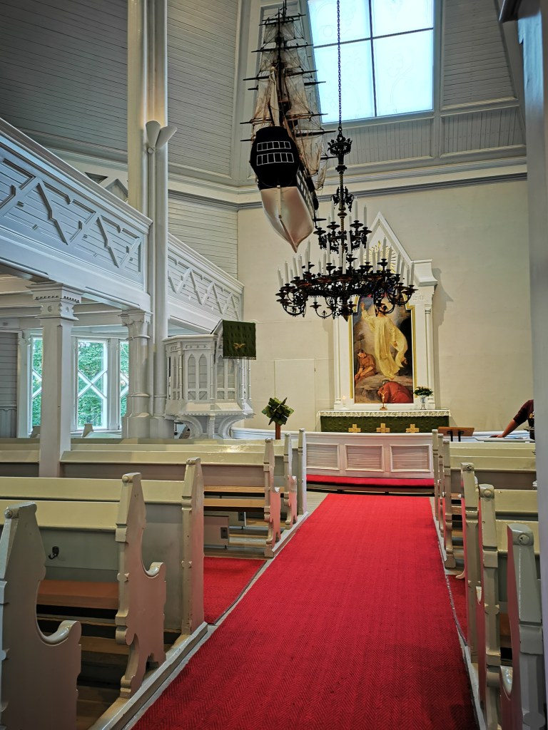 Kun saavuimme kylään, niin heti ensisilmäyksellä paikka näytti viehättävältä. Ohitimme aluksi pienen kyläkaupan, jonka jälkeen löysimme pian parkkipaikan. Täällä ei peritä parkkimaksuja, joten oli helppo jättää auto parikkiin ja lähteä tutkimaan aluetta. Ensin ylitimme pienen sillan, joka johti suoraan ruukkialueelle. Heti aluksi kiersimme pienen puodin, jossa löytyi koirakahvila ja erillinen myymälä. Myymälästä löytyi käsitöitä, luonnon raaka-aineista valmistettuja herkkuja ja kosmetiikkaa sekä erilaisia puuvilla- ja pellavavaatteita. Täältä jatkoimme matkaa Ruotsinpyhtään puukirkkoon. Kirkko seisoi pienellä mäellä ja se on rakennettu vuosina 1770-1771. Kirkko oli sisältä kaunis ja siellä oli harvinainen alttaritaulu, joka on maalattu v. 1898. Alttarintaulun nimi on ylösnousemus ja sen on maalannut kuuluisa maalari Helen Schjerfbeck.