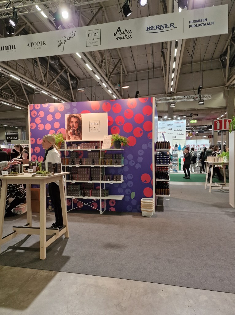Ihan lopuksi kävin yhdellä messuosastolla ja se oli Puhdistamon osasto. Osasto oli iso ja myynnissä oli paljon superfoodia ja ravinnelisiä. Mukaan tarttui iso pussillinen chian siemeniä, havupuu-uutejuoma sekä veriappelsiini Kombucha joka on raikas ja kupliva juoma ja sisältää runsaasti maitohappobakteereja. Mukaani sain myös kaksi super smoothieta joita jaettiin messukävijöille.