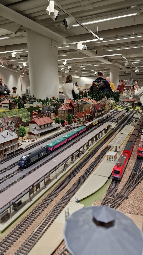 Kauppakeskus Ainoa on suuri, jonka sisällä on sata erikoisliikettä ja erillinen ravintolamaailma Food Garden. Kun menimme kauppakeskukseen eteen tuli ensimmäisenä pienoisrautatienäyttely. Alppirautatieharrastajat järjestävät muutaman kerran vuodessa pienoisnäyttelyn, jossa tämä upea kokonaisuus on täydessä koossaan. Pienoisjunat on sijoitettu oikeisiin alppimaisemiin mm. Sveitsiin, Saksaan, Itävaltaan jne. Oli melkoinen sattuma, että juuri osuimme tähän aikaan paikalle, jolloin näyttely oli esillä. Upea kokonaisuus.