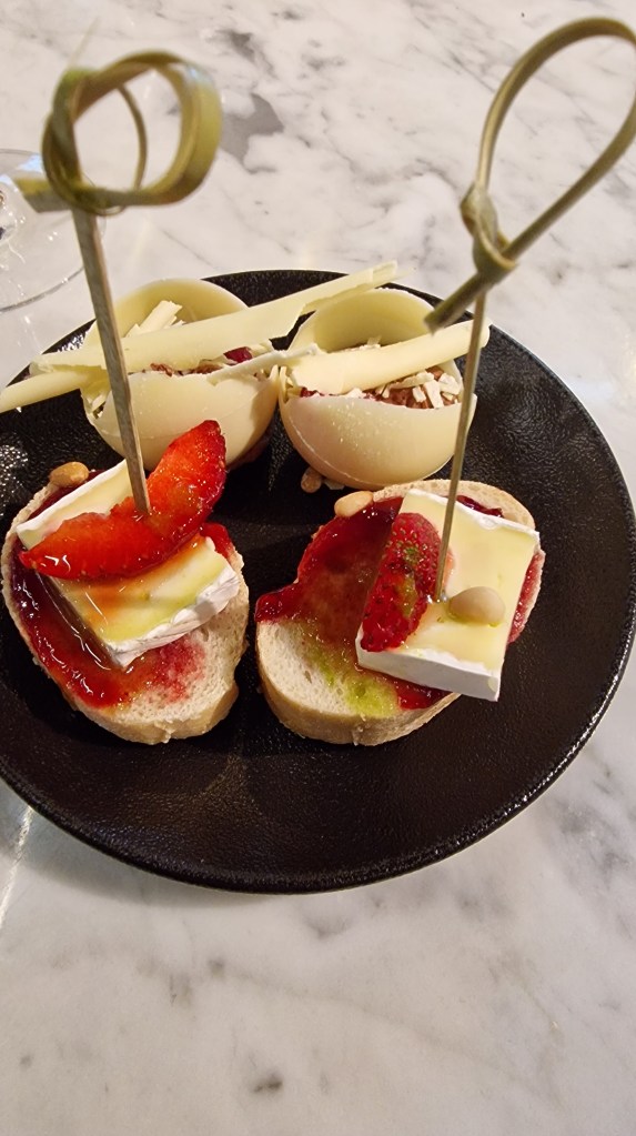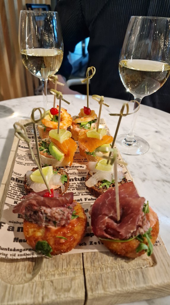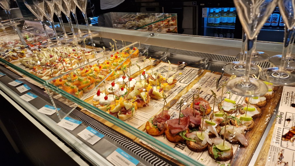 Tämän jälkeen lähdimme etsimään ruokapaikkaa, joka osoittautuikin aika haastavaksi löytää. Kiertelimme kauppakeskusta ristiin rastiin ja välissä vaihdoimme jo rakennusta. Vihdoin löysimme ravintolamaailman ja suuntasimme viehättävään ravintolaan nimeltä Deliberi. Ravintola oikein kutsui luokseen. Aluksi näimme suuressa vitriinissä esillä olevia pikkuherkkuja. Ostimmekin niitä useamman kappaleen. Pienet suupalat olivat erittäin maittavia. Tässä ravintolassa kävimme kahteen eri kertaan nauttimassa maittavasta ruoasta.