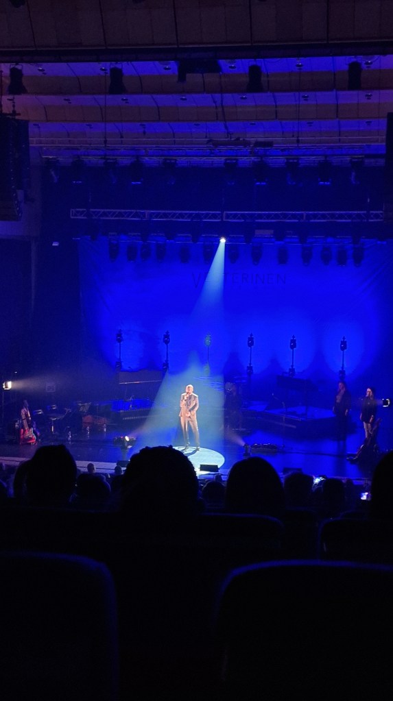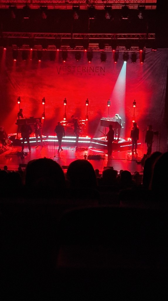 Paikat olivat yläkatsomossa, joten korkealta katsottuna lava upeine valoineen näytti hienolta. Konsertti alkoi ajallaan ja suuri 13 hengen orkesteri aloitti soiton. Illan aikana Vesterinen lauloi tuttuja biisejä ja väliin tuli myös uusia kappaleita, joita uusi levy pitää sisällään. Radiohitit nostattivat tunnelmaa ja välissä yleisö innostui valtaviin taputuksiin.
