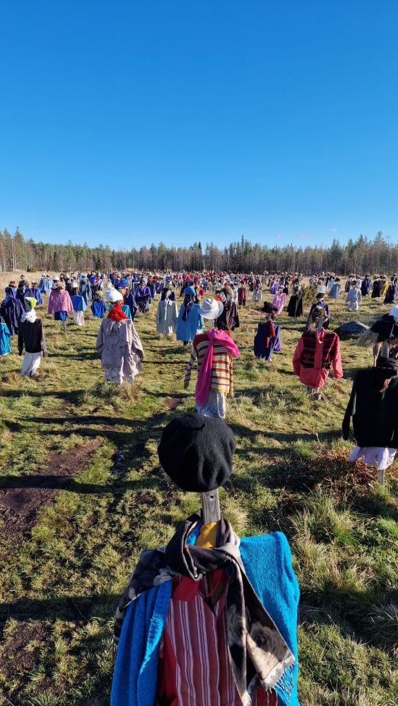 Pidimme viikon syyslomaa lokakuun alussa. Katsoimme, että tässä ajassa kerkeää hyvin käydä kotiseudulla lomailemassa. Kun ajelimme pitkin viitostietä, matka taittui jouhevasti auringon paistaessa ja ruskamaisemia katsellessa. Loppumatkasta pysähdyimme ihailemaan hetken Hiljaista kansaa, joka on tervehtinyt kulkijoita vuoden ajasta riippumatta vuodesta 1988 saakka.