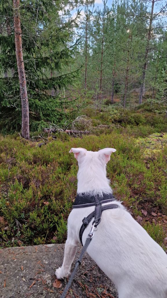 Marraskuun alku oli harmaa ja sateinen, mutta lämmin. Dani koiran kanssa teimme päivittäisiä lenkkejä lähiympäristössä ja välissä piipahdamme hetkeksi metsäpolulle.