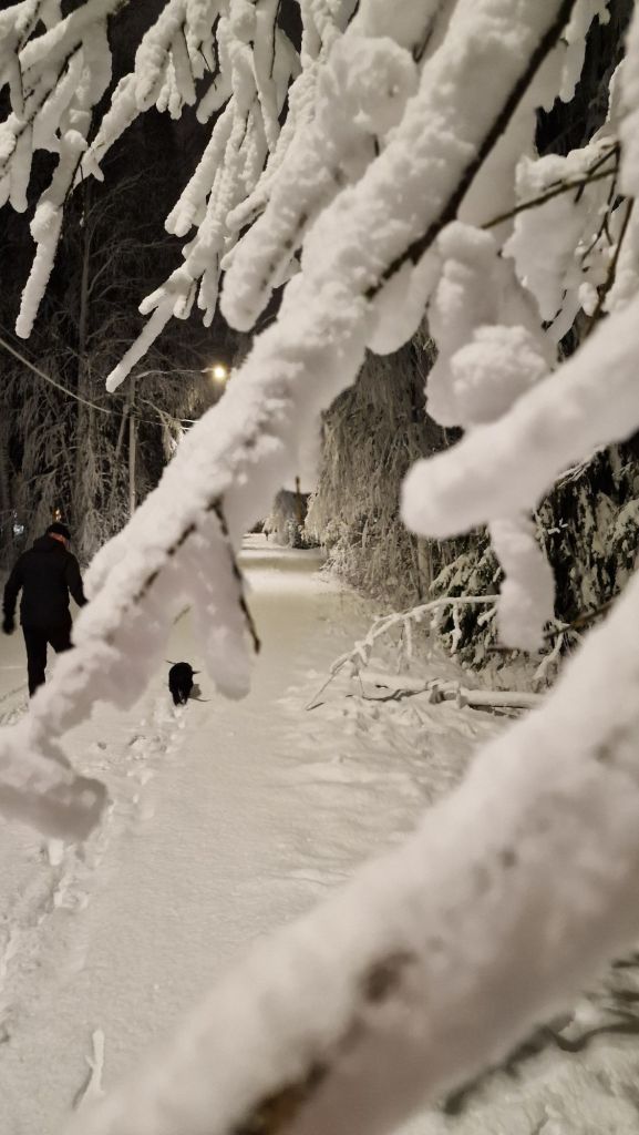 Pääkaupunkiseudun asukkaat ovat siitä hankalassa asemassa, että runsas lumi vaikuttaa kaikkien elämään. Tiet ovat ruuhkaisia, lentokoneet ja junat myöhästelevät ja jalankulkuväylät ovat tukossa. Tässä myrkyssä sähköt olivat monella poikki ja puita oli katkeillut teille.