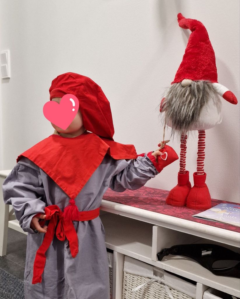 Lapsenlapsen kanssa olemme leiponeet ensimmäiset piparit ja mummolassa on leikitty tonttuleikkejä. Joulukuusi odottaa jo paikalleen asettamista.