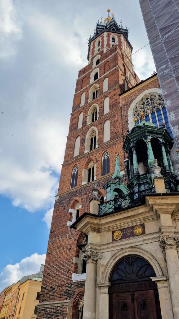 Meidän hotellimme sijaitsi keskustassa aivan Krakovan Vanhankaupungintorin kupeessa. Tori, jota kutsutaan Rynek Główny on Euroopan suurimpia keskiaikaisia kaupunkitoreja. Torin keskellä on Sukiennice-verkahalli ja laidalla kohoaa Pyhän Mariankirkko joka on upea maamerkki.