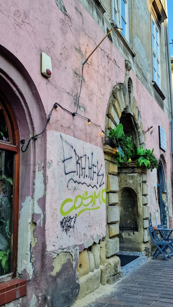 Linnalta eteenpäin saavuimme juutalaiseen kortteliin. Tämä on Krakovan suosituimmista vierailukohteista. Teimme aika pikaisen kierroksen täällä mutta erityispiirteenä voisi sanoa, että alue muistuttaa nykyisin aika paljon Tallinnan Telliskiven aluetta. Alueella on paljon katutaidetta ja boheemia tunnelmaa. Täältä löytyy persoonallisia kauppoja ja vintage-liikkeitä.