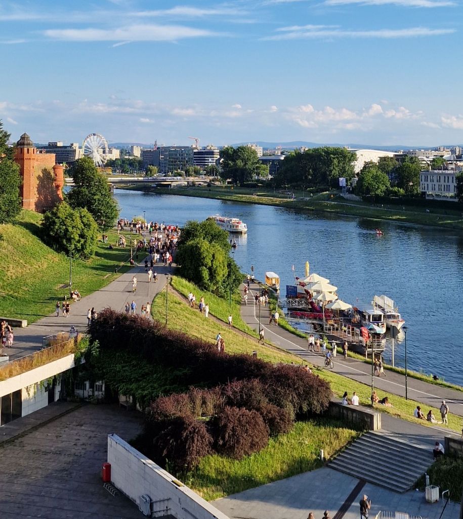 Kun olimme kaupungissa heinäkuun parhaassa sesongissa niin meidän yhdestä lempipaikoista tuli Veiksel joen ranta. Vietimme kaksi iltaa joen rannalla katsomassa jokiveneitä, joita risteili joen vartta pitkin. Kun ilma oli helteinen oli joen rannalle kerääntynyt runsain määrin paikallista väkeä ja turisteja viettämään kesäistä iltaa. Joen rannalta näki myös ihanan linna-alueen, joka siinsi upeana taustalla.