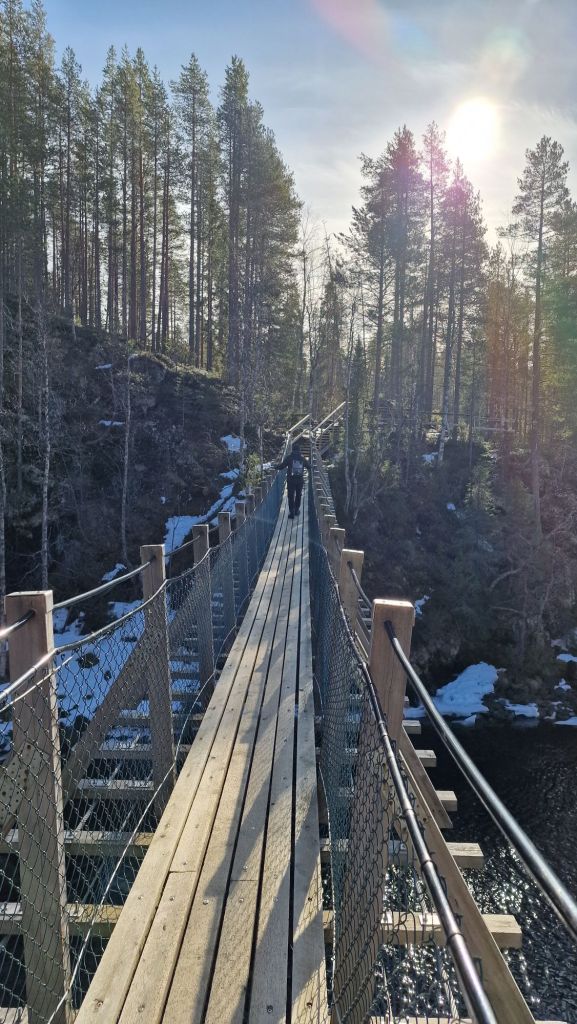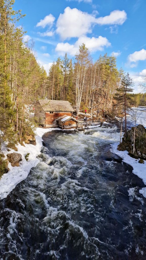 Ensimmäinen kohde on Suomen kuvatuin luontokohde eli Myllykoski. Paikka löytyy Karhunkierroksen vaellusreitin varrelta. Paikalle pääsee erittäin helposti, kun ajaa ensin Juuman kylässä olevalle pysäköintialueelle, jossa sijaitsee Karhunkierroksen lähtöportti. Tästä kun lähtee kävelemään niin Myllykoski tulee vastaan noin 1,5 km päästä. Ennen Myllykoskea on Niskakoski, joka on hieman vaatimattomampi mutta hieno sekin. Pääset heti tässä kohtaa kävelemään ensimmäisen riippusillan yli.